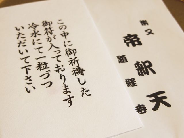 なんとこの御守、身に付けるのではなく、飲むことでご利益を得る御守であり、柴又帝釈天で今も実際にいただくことができる。